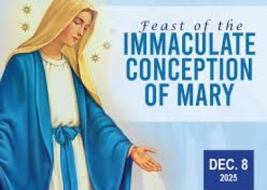 The Feast of the Immaculate Conception will be celebrated at 10.00am and 7.30 pm Area Mass